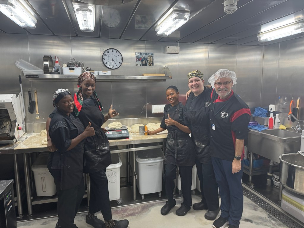 One thing is sure, Mercy Ship life is VERY BUSY! Marci and I have been aboard less than a week (we arrived late last Sunday night) and it feels (not even kidding) like a month. Most of the time is filled with work (jobs to help us accomplish our mission of providing hope and healing) but there are also a great many “community” activities.